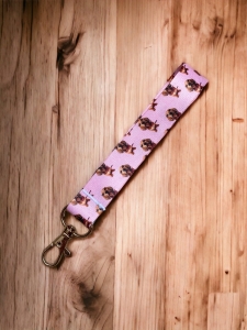 Brelok wykonany na taśmie smyczowej.