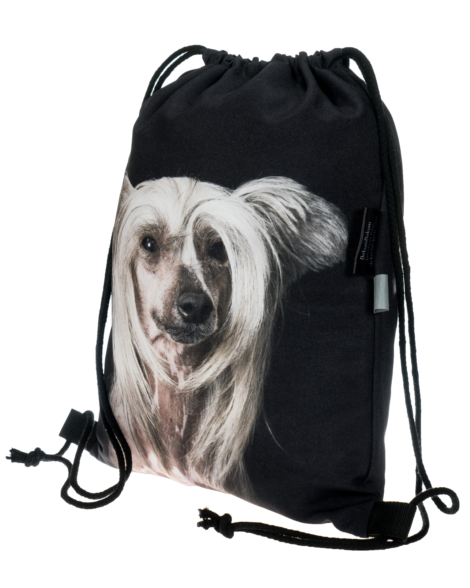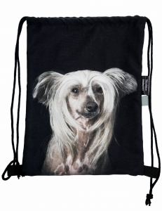 Plecak, worek z psem grzywaczem chińskim.
