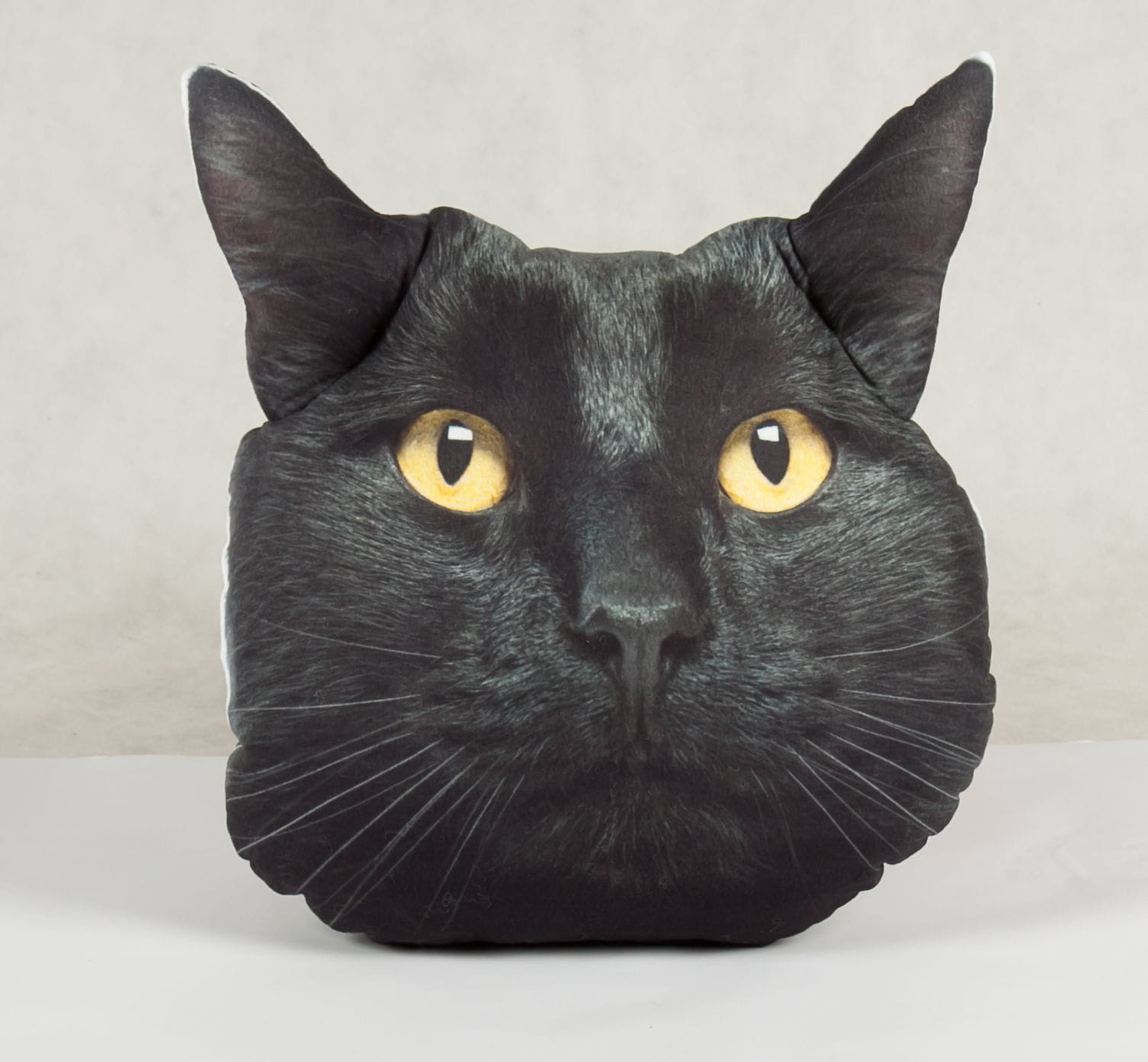 Duża i miękka poduszka z czarnym kotem.