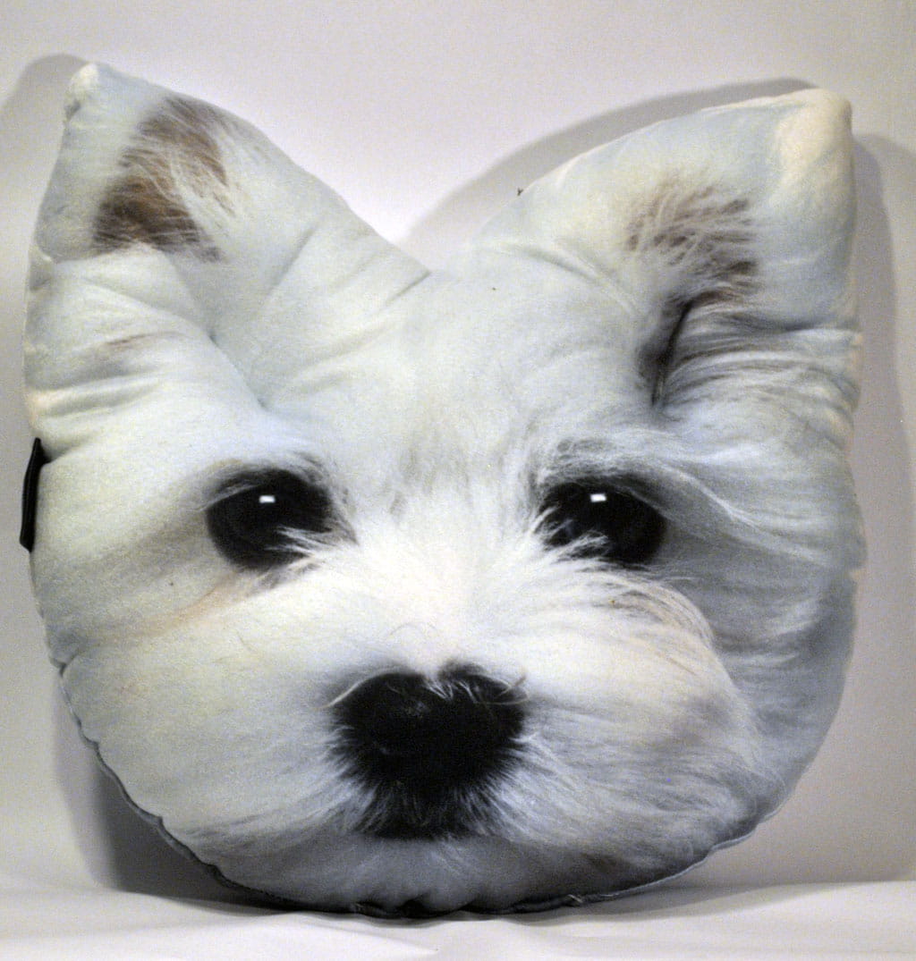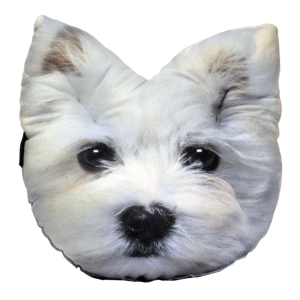 Duża i miękka poduszka z psem maltańczykiem.