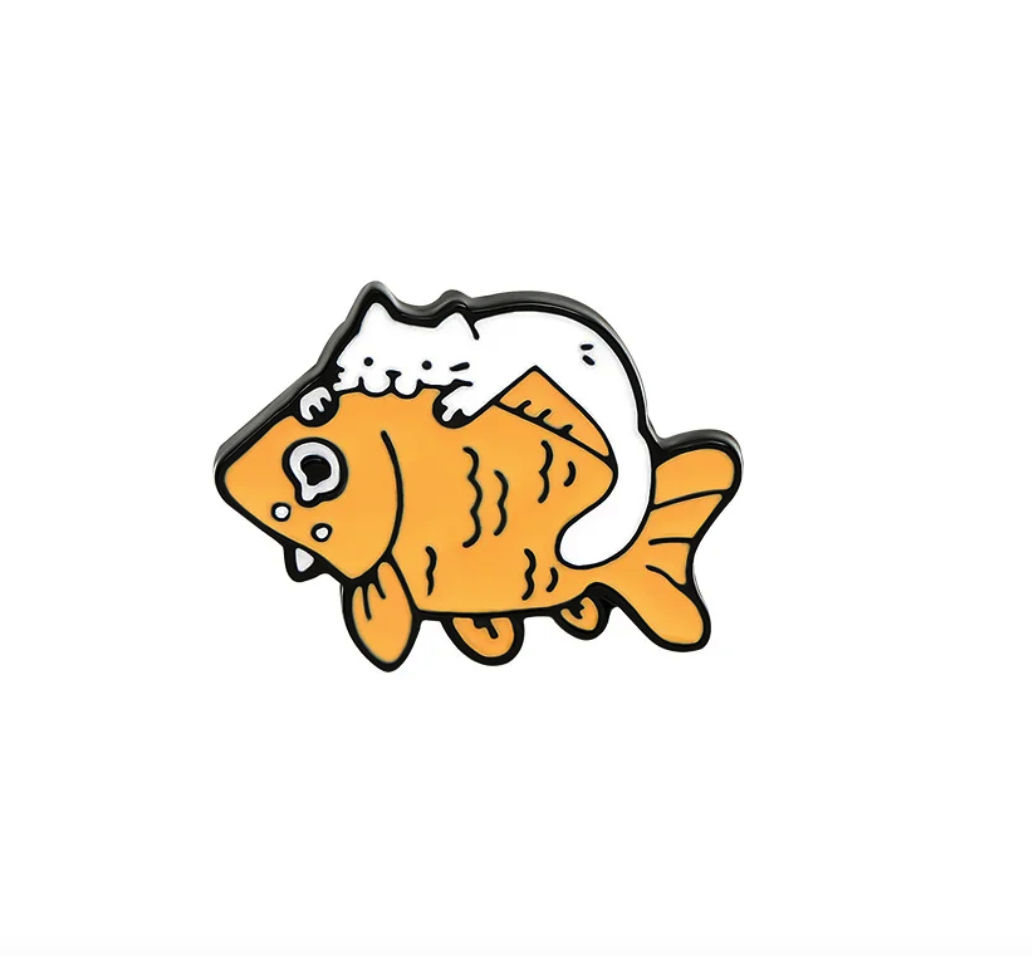 Przypinka z KOTEM BIAŁYM Z RYBKĄ